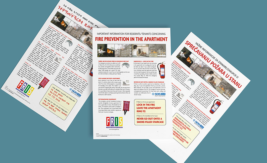 Det är avgörande att alla boende i flerbostadsfastigheter förstår brandrisker i hemmet, hur man förebygger brand och vad man ska göra om en brand skulle uppstå. För att underlätta spridningen av denna viktiga information erbjuder vi material på 15 olika språk. Detta inkluderar ett A4-informationsblad om brandskydd i lägenheter samt en kort film på 4 minuter.